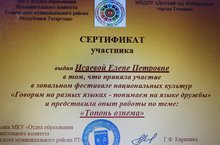 Наш педагог Исаева Елена Петровна приняла участие в зональном фестивале национальных культур «Говорим на разных языках – понимаем язык дружбы» и представила опыт работы по теме: «Мордовский обряд «Топонь ознема».
