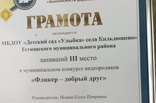 Наш детский сад награжден грамотой 3 место за участие в муниципальном конкурсе видеороликов «Фликер – добрый друг».