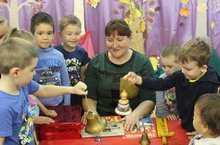 «Колокола и колокольчики» - литературно - познавательный час провела библиотекарь Кильдюшевской поселенческой библиотеки Марина Кудашова с воспитанниками детского сада. На мероприятие библиотекарь пришла с библиосюрпризом, который так любят дети. Открыв коробку, ребята увидели коллекцию колокольчиков. Ребята познакомились с легендой, рассказывающей о том, как появились колокола, об их предназначении и их разнообразии, как размеров, так и звучании. Всех поразили размеры Царь - колокола, увиденного на иллюстрации книги «Удивительная Россия».