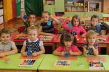 Работая над проектом по ознакомлению со свойствами воды было проведено развлечение с пластелином.Дети методом пластелинографии разукрасили капельку воды, которая " пришла" к ним в гости.