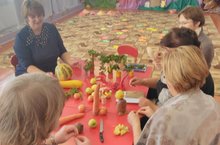 В ДОУ была организована выставка из пделок из природного материала " Фруктово овощная сказка".Ребята со всвоими родителями изготовили сказочны героев, смастерили чудесные яркие сюжеты.