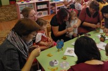В этом году мы решили подарить нашим мамам на праздник « билет в театр». В детском саду устроили ДЕНЬ ТЕАТРА. Дети для своих мам показали спектакль «Как звери чертенку маму искали». Во время антракта мамы с детьми посетили творческую мастерскую, где наши коллеги из соседних детских садов Трифонова Л.Ф, Меньшова Т.И, Портнова С.А. показали им мастер классы по изготовлению театральной атрибутики. После антракта все были приглашены на кукольный спектакль «Подарок для мамы», который подарили нам сельский библиотекарь Кудашова М.П. и учащиеся школы. В конце праздника дети спели песню, и порадовали мам и гостей подарками, сделанными своими руками.
