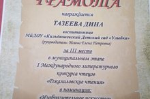 Участие воспитанницы в муниципальном этапе 1 Международного конкурса чтецов "Джалиловские чтения" в номинации "Изобразительное исскуство"