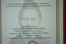 Воспитанница старшей разновозрастной группы Селянкина Азалия получила диплом 2 степени Всероссийского открытого конкурса творчества
