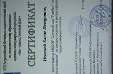 Наш педагог Исаева Елена Петровна приняла участие в 8 Всероссийском фестивале педагогических идей по экологическому образованию в рамках международной программы « Эко – школы \Зеленый флаг».