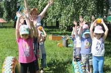 Затем взявшись за руки, детишки вернулись на свою игровую площадку и поиграли в народные игры.