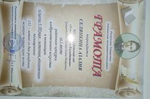Воспитанница старшей разновозрастной группы Селянкина Азалия была награждена грамотой за 1 место районного конкурса изобразительного искусства в номинации «Сказки Г. Тукая – источник вдохновения» посвященного 132 – летию со дня рождения великого татарского поэта.