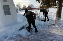 В рамках месячника военно-патриотического воспитания юнармейский отряд "Вымпел" очистили территорию памятника павшим землякам в ВОв от снега.