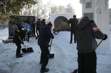Юнармейцы школы совместно с педагогом-организатором Горбуновой Е.П. в рамках акции «Обелиск» почистили от снега территорию памятника павших в Великой Отечественной войне.