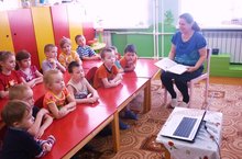 В рамках недели детской книги библиотекарь школы провела мероприятие для детей детского сада "Улыбка". Дети послушали сказки и посмотрели мультфильмы.