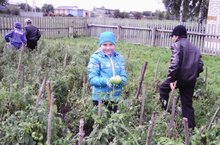 В рамках благотворительной акции учащиеся 5-6 классов собрали урожай помидор и огурцов с пришкольного участка.