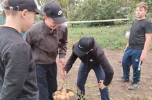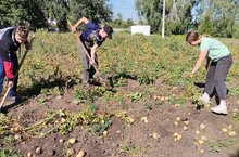 В рамках внеурочной деятельности "Агрокласс" учащиеся 8 класса собрали урожай картофеля с пришкольного участка.