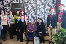 27 апреля, в предверии Дня Победы, начальник МКУ"Отдел образования Исполнительного комитета Тетюшского муниципального района РТ " Кирилина Г.Ф., учителя и ученики школы поздравили труженицу тыла Соколову Ольгу Семеновну с наступающим праздником и вручили подарок. Пожелали крепкого здоровья, мирного неба над головой.