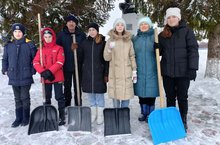 Патриотическое воспитание школьников - одно из приоритетных направлений работы школы. Тимуровцы школы провели акцию «Снежный десант» по очистке памятника от снега.