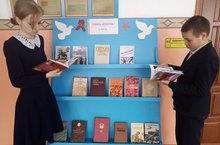 В рамках месячника гражданско - патриотического воспитания в школе организована выставка книг "Отвага, мужество и честь".
