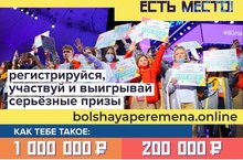 Дорогие ребята, "Большая перемена" приглашает вас на конкурсы. Ты найдешь интересный для тебя вызов: "Создавай будущее!", "Меняй мир вокруг!", "Твори!", "Познай Россию!", "Делай добро!", "Помни!", "Сохраняй природу!", "Расскажи о главном!", "Будь здоров!", "Открывай новое!", "Предпринимай!", "Служи Отечеству!". Участвуй в конкурсе "Большая перемена" и получай бомбические призы.