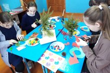 В рамках недели искусства с учащимися 6-7 классов проведен мастер-класс по изготовлению "Рождественского венка".