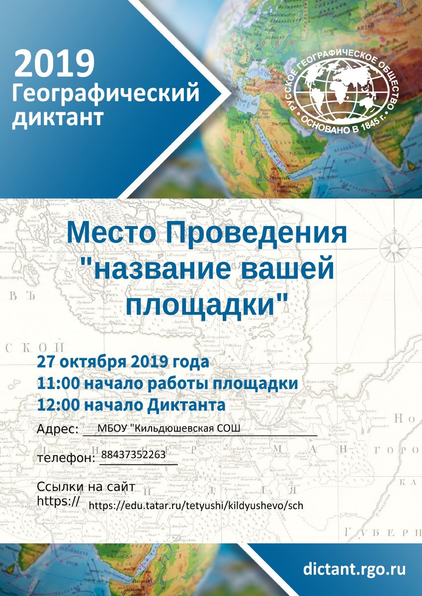 27 октября 2019 года учащиеся школы приняли участие в международной просветительской акции - Географическом диктанте, организованным Русским географическим обществом. Руководитель площадки Малькина Л.П.