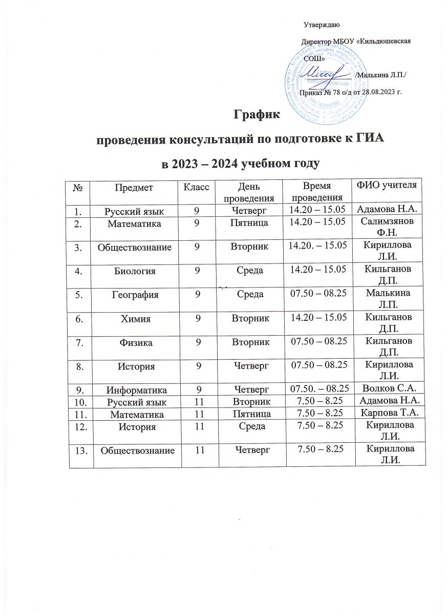График проведения консультаций по подготовке к ГИА в 2023 - 2024 учебном году