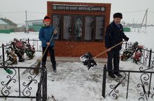 Юнармейцы и форпостовцы совместно с руководителем Ивановым Н.Д. в рамках операции "Снег" очистили территорию памятника Павшим в ВОВ от снега.
