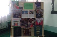 В рамках месячника "Экстремизму -НЕТ!" и празднования 100-летия ТАССР в фойе школы библиотекарь организовала выставку книг и журналов "Наш дом - ТАТАРСТАН: одна земля, одна история".