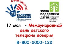 17 мая - Международный день детского телефона доверия. И чтобы напомнить об этом, в этот день уже традиционно Фонд поддержки детей, создавший единый общероссийский телефон доверия для детей, подростков и их родителей 8-800-2000-122, проводит всероссийскую акцию «Баланс доверия».