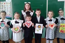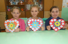 Учащиеся начальных классов даже на каникулах пришли на занятие по внеурочной деятельности «Умелые руки». Впереди ребят ждут праздники. Они заранее стали к ним готовиться. Сегодня сделали аппликацию «Сердечко».