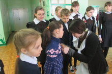 Юнармейцы провели акцию "Георгиевская ленточка". В преддверии главного праздника, Дня Победы, по традиции раздали всем учащимся, учителям и работникам школы черно-оранжевую ленту – символ Победы и уважения к исторической памяти.