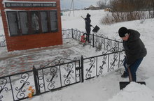 Юнармейцы школы в рамках операции "Снег" под руководством руководителя Абраконова С.С. очистили от снега территорию памятника Павших в Великой Отечественной войне после очередного снега.
