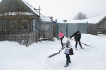 Учащиеся 6 класса под руководством педагога-организатора Абраконовой Т.В. помогли с уборкой территории дома от снега жителю села Дружинину В.