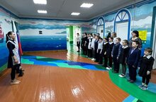 IV четверть 2022-2023 учебного года началась с выноса флагов и исполнения гимнов Российской Федерации и Республики Татарстан.