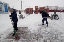 Юнармейцы совместно с руководителем Юнусовой Г.Р. в рамках операции "Снег" очистили территорию памятника Павшим в ВОВ от снега