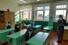 В рамках месячника гражданской обороны в начальных классах прошёл урок- практикум по умению пользоваться ватно- марлевой повязкой в экстремальных ситуациях
