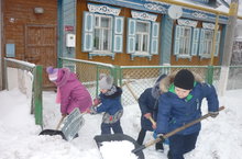 Учащиеся активно участвуют в операции «Снег». Они убирают снег со двора ветерана войны Садыкова И.В.