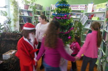В школе -детский сад прошло представление с театрализацией вокруг ёлки «Новый Год пришёл к нам в гости!»На празднике было много песен, танцев, стихов, ребята водили хоровод вокруг лесной красавицы вместе с главными героями праздника – Дедом Морозом и Снегурочкой, а также со сказочными персонажами. На праздник пришёл и символ года - Петушок, который поздравил всех с наступающим Новым годом и вместе с Дедом Морозом подарил детям подарки.