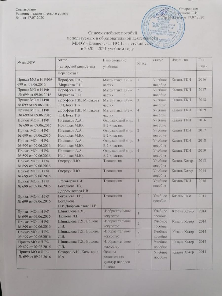 Список учебных пособий, используемых в образовательной деятельности в 2020-2021 учебном году