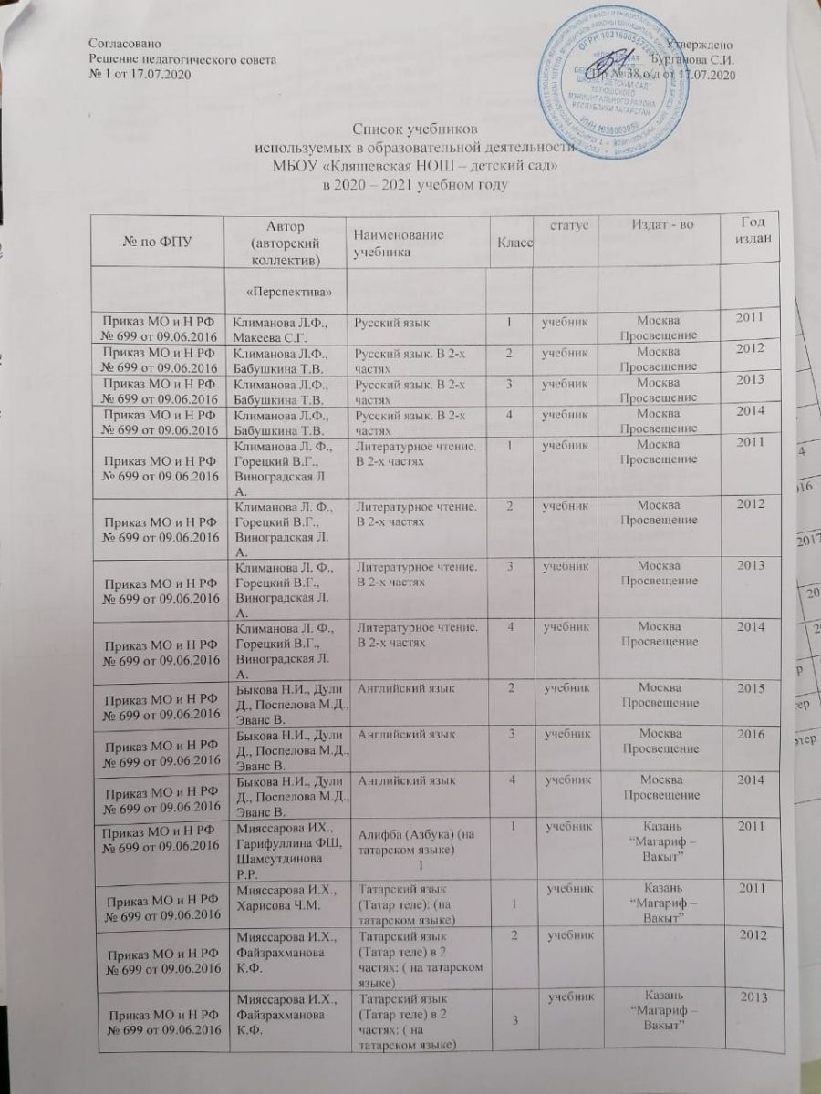 Список учебников, используемых в образовательной деятельности в 2020-2021 учебном году