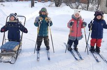 Дошкольники с воспитателем совершили прогулку на лыжах.