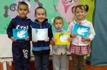 Дети из дошкольной группы вместе с воспитателем, изготовили аппликацию "Мы -за мир!"