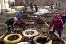 Дошкольники вышли на субботник.
