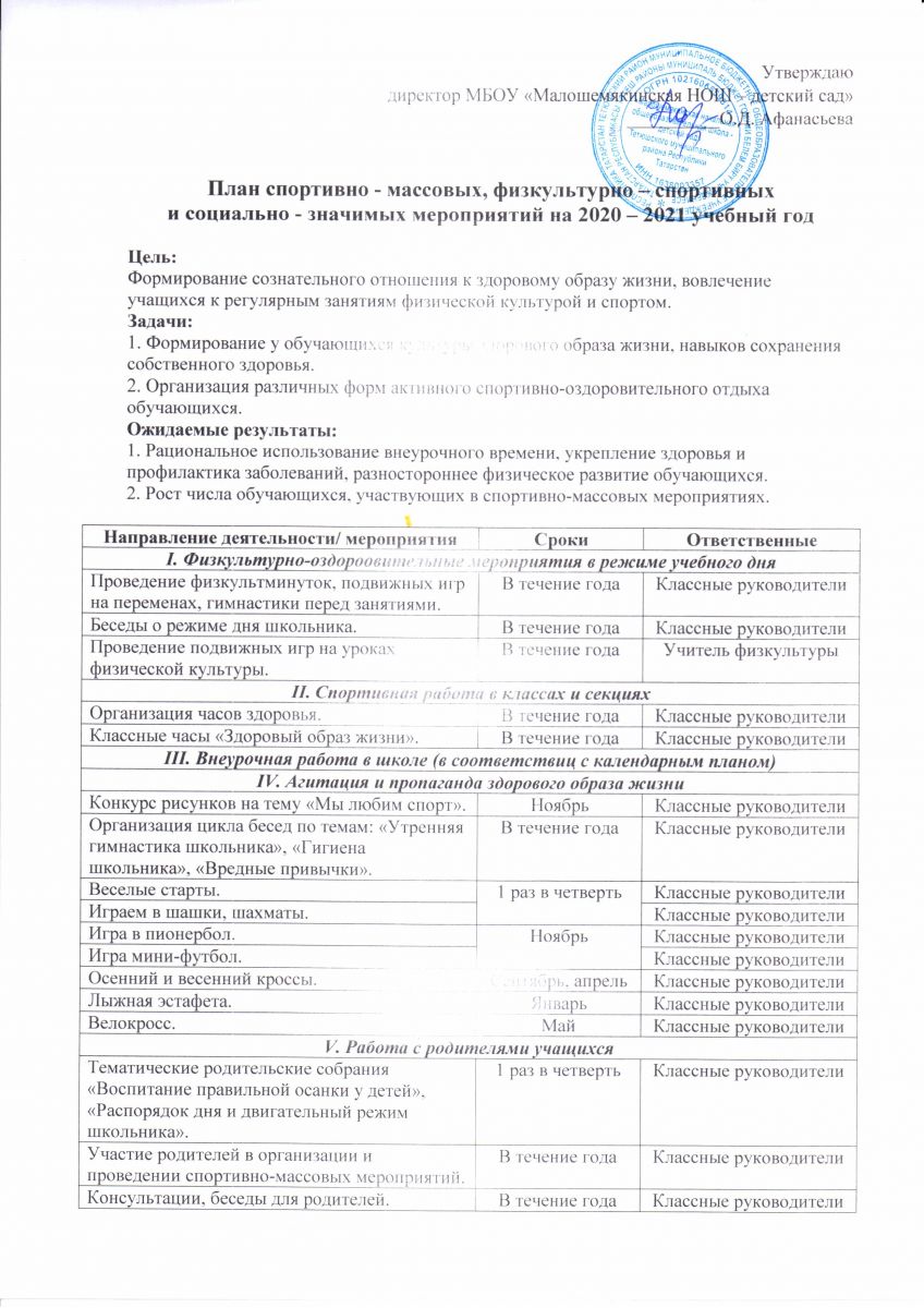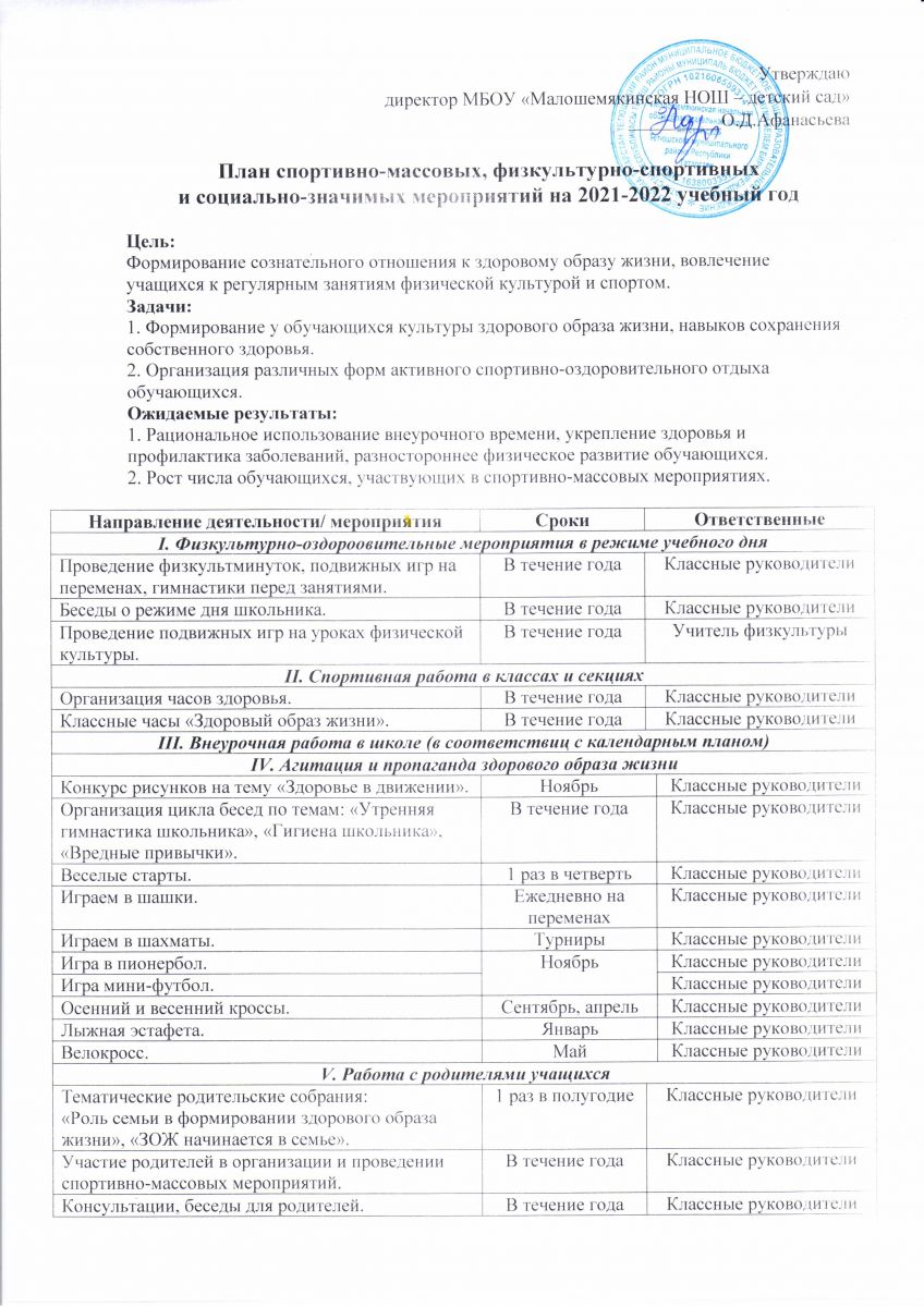 План спортивно-массовых,физкультурно-спортивных мероприятий