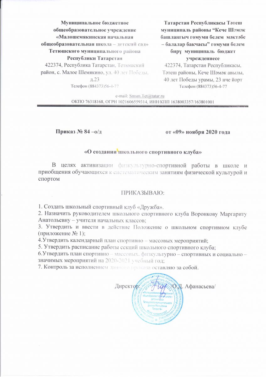 | Адрес: | 422374, Республика Татарстан, Тетюшский район, с. Малое Шемякино, ул. 40 лет Победы, д. 23 |