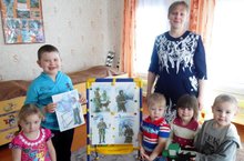 В рамках месячника патриотизма в дошкольной группе проведена беседа на тему: "Армия в наши дни", в ходе которой уточнили представления детей о родах войск Российской армии и их назначении. А также изготовили "снаряды" из пластелина.