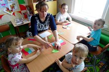 В дошкольной группе идёт подготовка к празднику Дню защитника Отечества. Ребята делают открытки своим папам.