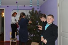 Учащиеся и педагогические работники активно готовятся к новогоднему утреннику. Украшена в столовой красавица-ёлка.