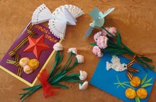 Учителями с учащимися активно ведётся работа по изготовлению поздравительных открыток для ветерана и тружениц тыла.