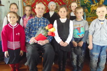 Сегодня учащиеся школы поздравили ветерана ВОв, вдов, тружеников тыла с наступающим Днём Победы