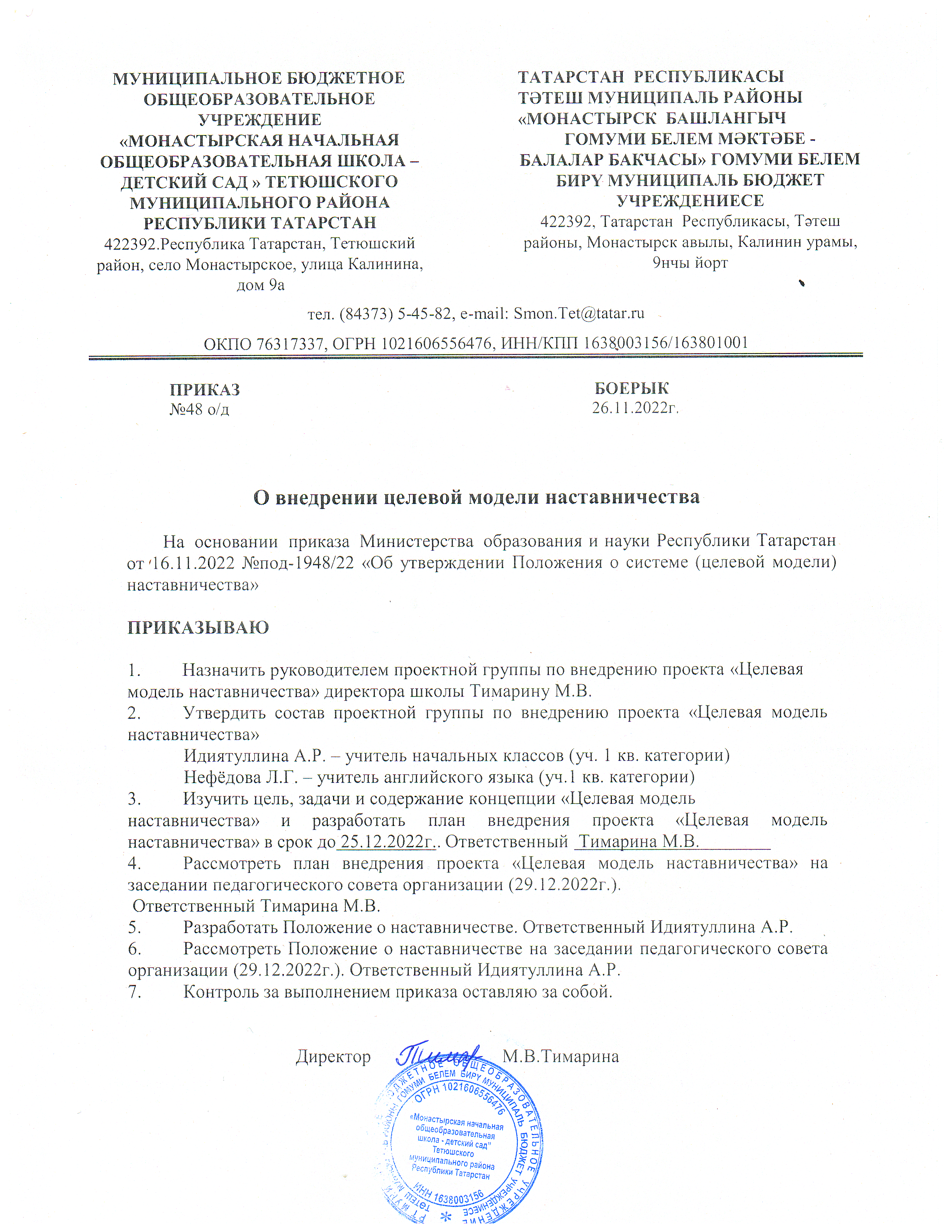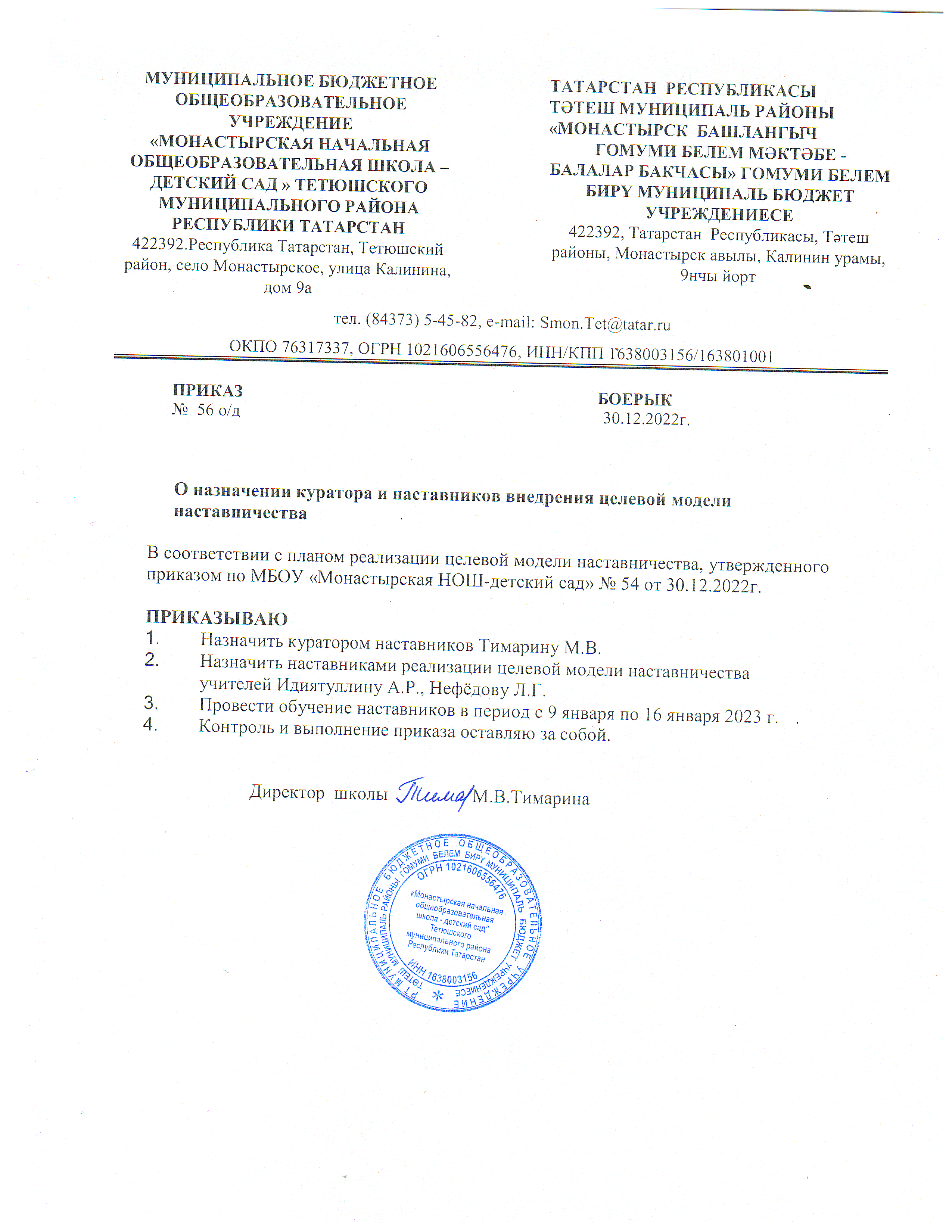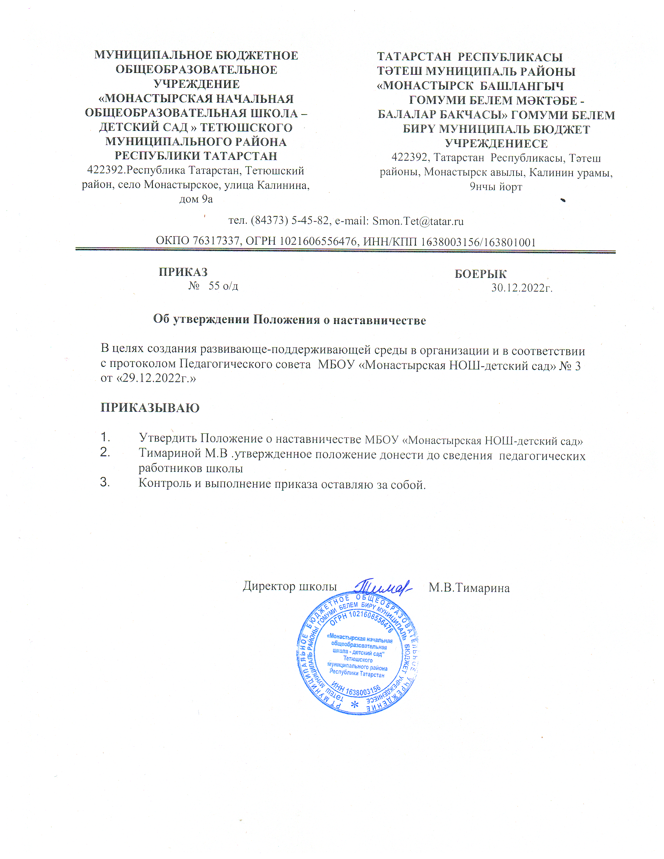 Муниципальное бюджетное общеобразовательное учреждение «Монастырская начальная общеобразовательная школа - детский сад» Тетюшского муниципального района РТ
