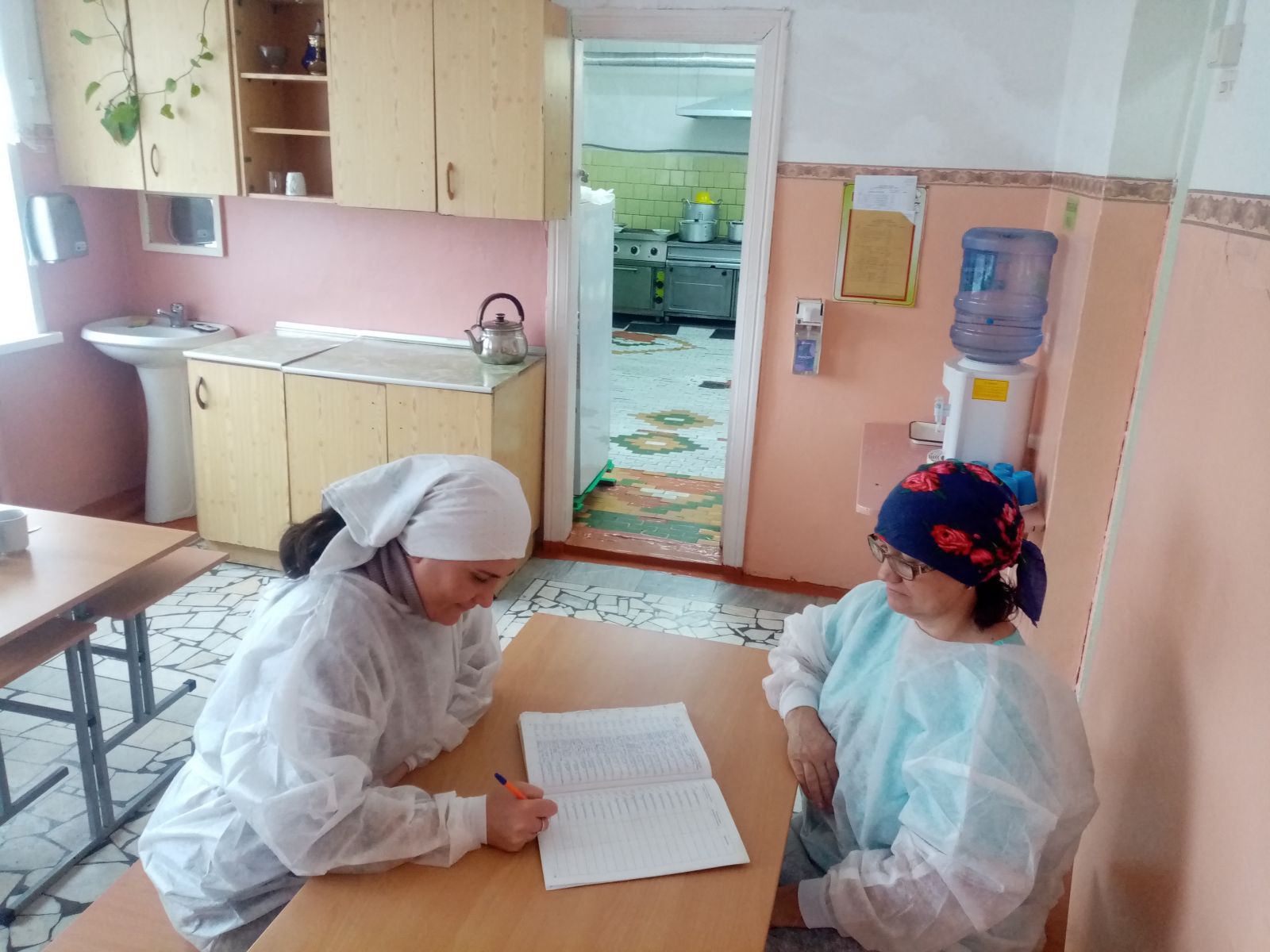 Фото членов комиссии в школьной столовой при проверке
