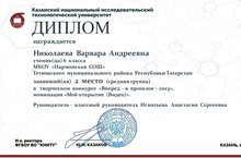 Ученица нашей школы Николаева В. заняла 2 место в номинации "Моё открытие". Руководитель Игнатьева А. С. была награждена благодарственным письмом за подготовку призёра. Поздравляем! -